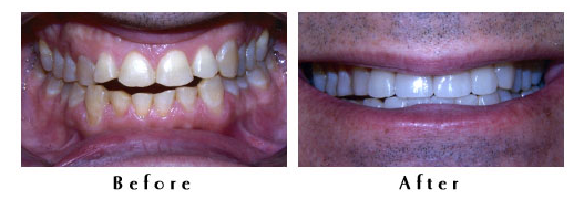 Four broken and crooked incisors replaced with 4 porcelin veneers.